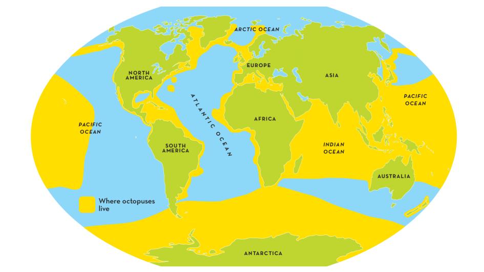 Octopi are found all over the world, in subtropical, tropical and temperate shallow water.