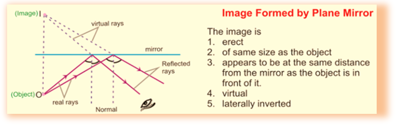 Image made by a plane mirror is laterally inverted image (where left becomes right and right becomes left).
